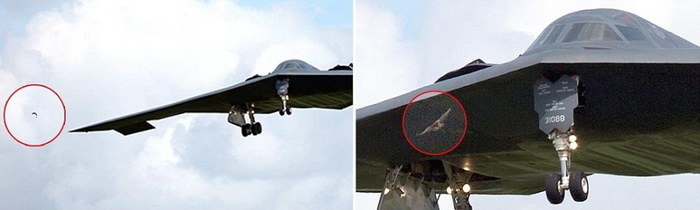 驻英美军B-2隐形轰炸机降落时与秃鹰相撞(假设此鹰受控,且身上绑有炸弹,那么12亿美金的战机就废了)